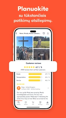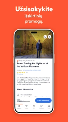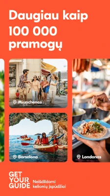 Ar svajojate apie atostogas, kupinas nuotykių, ar ieškote įkvepiančių užsiėmimų paskutinę minutę? Su „GetYourGuide" programėle kiekviena kelionė virsta nepamirštama istorija. Atraskite ir lengvai rezervuokite tūkstančius išskirtinių ekskursijų, dienos išvykų ir įvairiausių pramogų, apimančių kultūros, gastronomijos, gamtos stebuklus ar adrenalino kupinus nuotykius. Mes padedame keliauti protingiau, leidžiant jums mėgautis kiekviena akimirka ir kurti brangius prisiminimus visame pasaulyje.