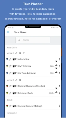 „Sightseeing App" išsiskiria visapusišku veikimu neprisijungus, leidžiančiu tyrinėti be interneto ryšio rūpesčių. Peržiūrėkite savo aplankytų vietų istoriją su tiksliomis datomis ir laiku, arba analizuokite savo maršrutus žemėlapyje naudodami „Time Shift" funkciją. Apdovanojimai už pasiekimus suteikia papildomos motyvacijos, o duomenų importo ir eksporto galimybė garantuoja Jūsų informacijos mobilumą. Svarbiausia, kad „Sightseeing App" komanda tvirtai įsipareigoja saugoti Jūsų privatumą: čia nėra jokio sekimo, jokie duomenys nekeliauja į internetą be Jūsų tiesioginio sutikimo. Jūsų informacija yra visada Jūsų rankose. Pasinerkite į individualizuotą atradimų kelionę su „Sightseeing App" ir patirkite Edinburgą taip, kaip Jums patinka!