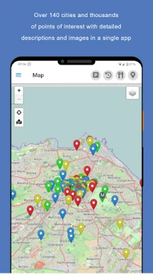 Atraskite miestus su išsamiais garso gidais ir žemėlapiais neprisijungus. Patogus sąrašo rodinys, galinga paieškos funkcija, istorijos peržiūra ir mėgstamiausių vietų žymėjimas. Lengvai keiskite miestus ir būkite ramūs dėl duomenų apsaugos. Jūsų tobulas kelionių palydovas su svarbiausiomis funkcijomis vienoje vietoje.